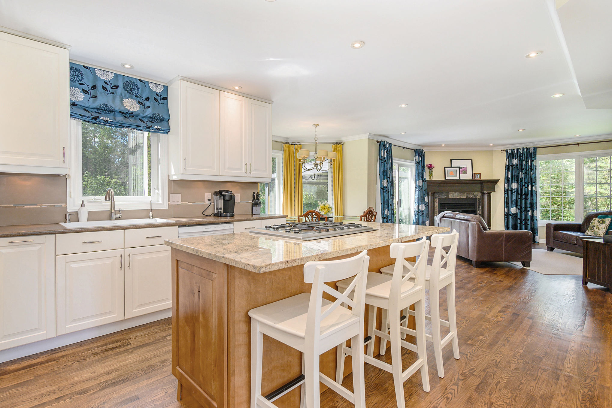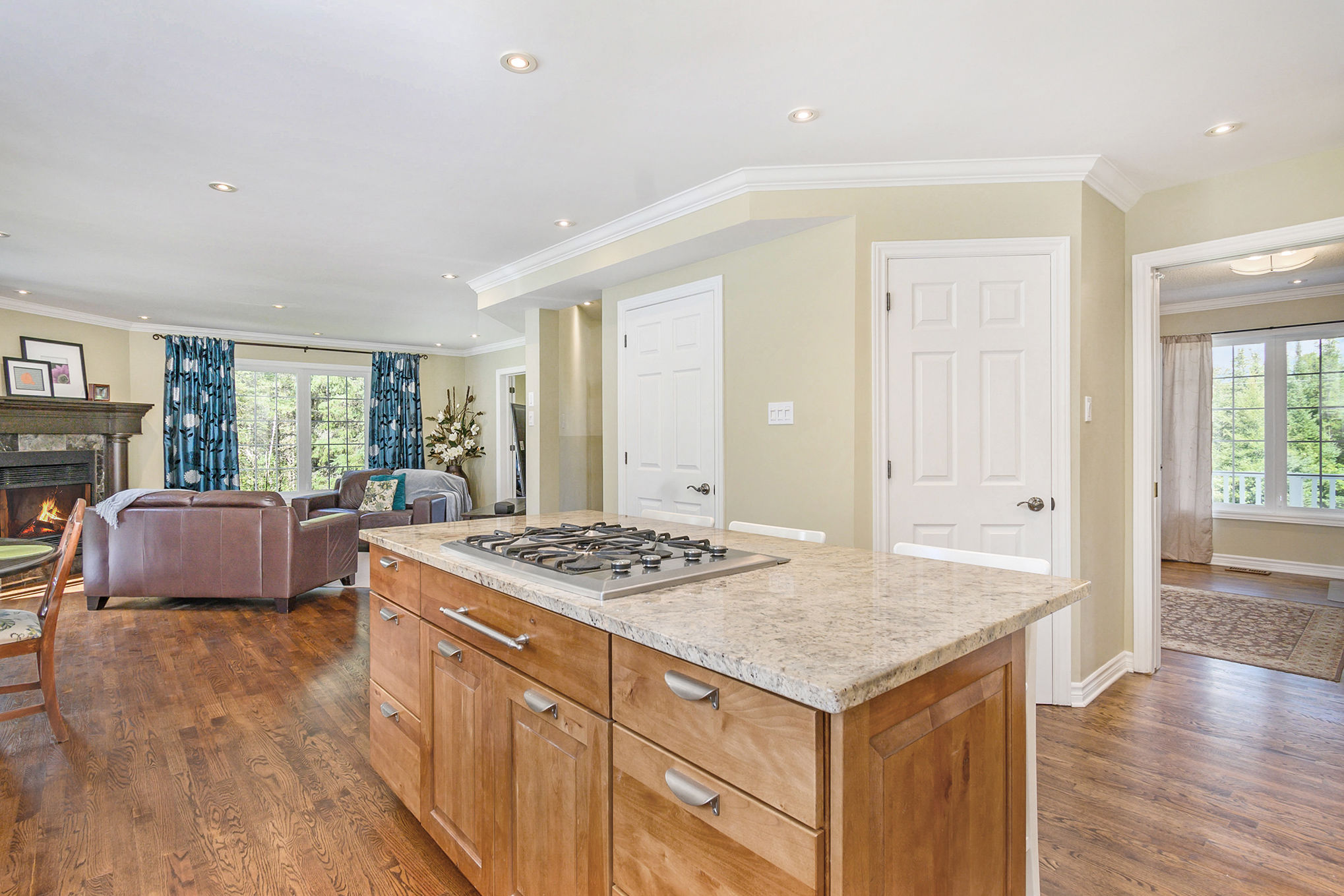 Welcome to Spruce Woods! This custom 3 bedroom, 3 bathroom home was designed by the owner, built by Savvy and then copied 4 times over in the area! Soaring ceilings in the spacious foyer welcome you to a completely re-designed main floor (2011). Semi-turret shaped living room with french door entry to the spacious family area and kitchen. Beautiful two-tone timeless kitchen with granite topped island, built-in Jenn-Air gas cook top & downdraft vent, built-in wall oven and microwave and loads of pantry space. Check out the family eating area with views to the trees! Mud room/garage/powder room and main floor laundry thoughtfully accessed from the kitchen. Formal dining room is currently used as home office with beautiful built-ins. Upstairs has large turreted master bedroom with ensuite and walk-in closet and two large bedrooms. Unfinished basement allows you to plan for what you would like. Trex deck leads to salt water above ground pool.