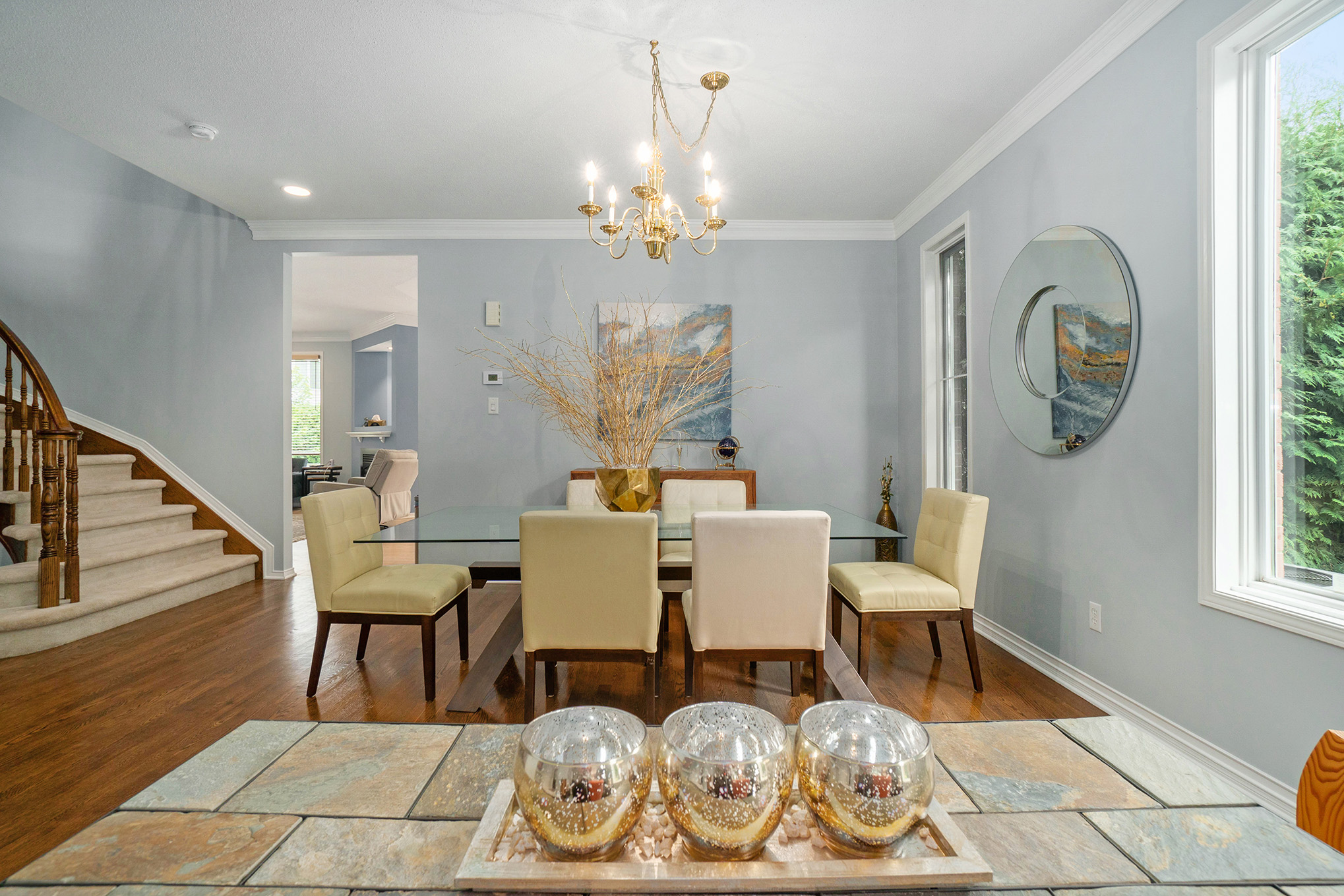 Welcome home to your own four bedroom, four bath home in the stunning community of Chapel Hill South. The heartbeat of this home is the open concept, fully renovated eat-in kitchen featuring plenty of windows providing a full view of the huge pie-shaped backyard complete with an inground salt-water swimming pool. This kitchen was professionally designed and installed in 2017 with quartz counters, breakfast bar, maple cabinetry and a homework station! The rest of the main level features large principle rooms with hardwood and tile floors and a main floor laundry room. A circular staircase takes you to the second level with four good sized bedrooms. Three of the bedrooms have walk-in closets and TWO bedrooms with full ensuite bathrooms! Fully finished basement with an abundance of natural light and a sauna! No conveyance of offers until 6pm on September 17th, 2020 as per form 244.
