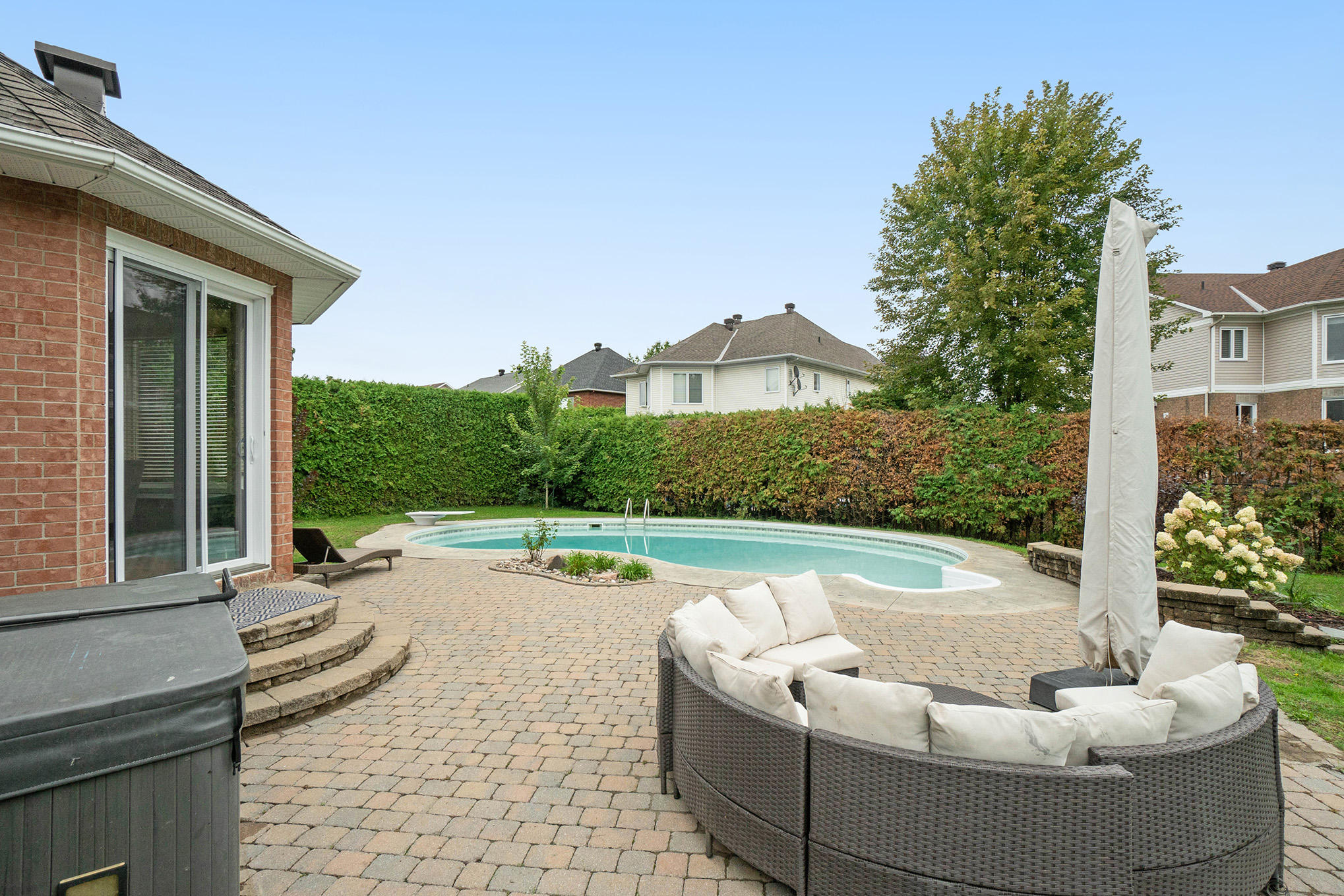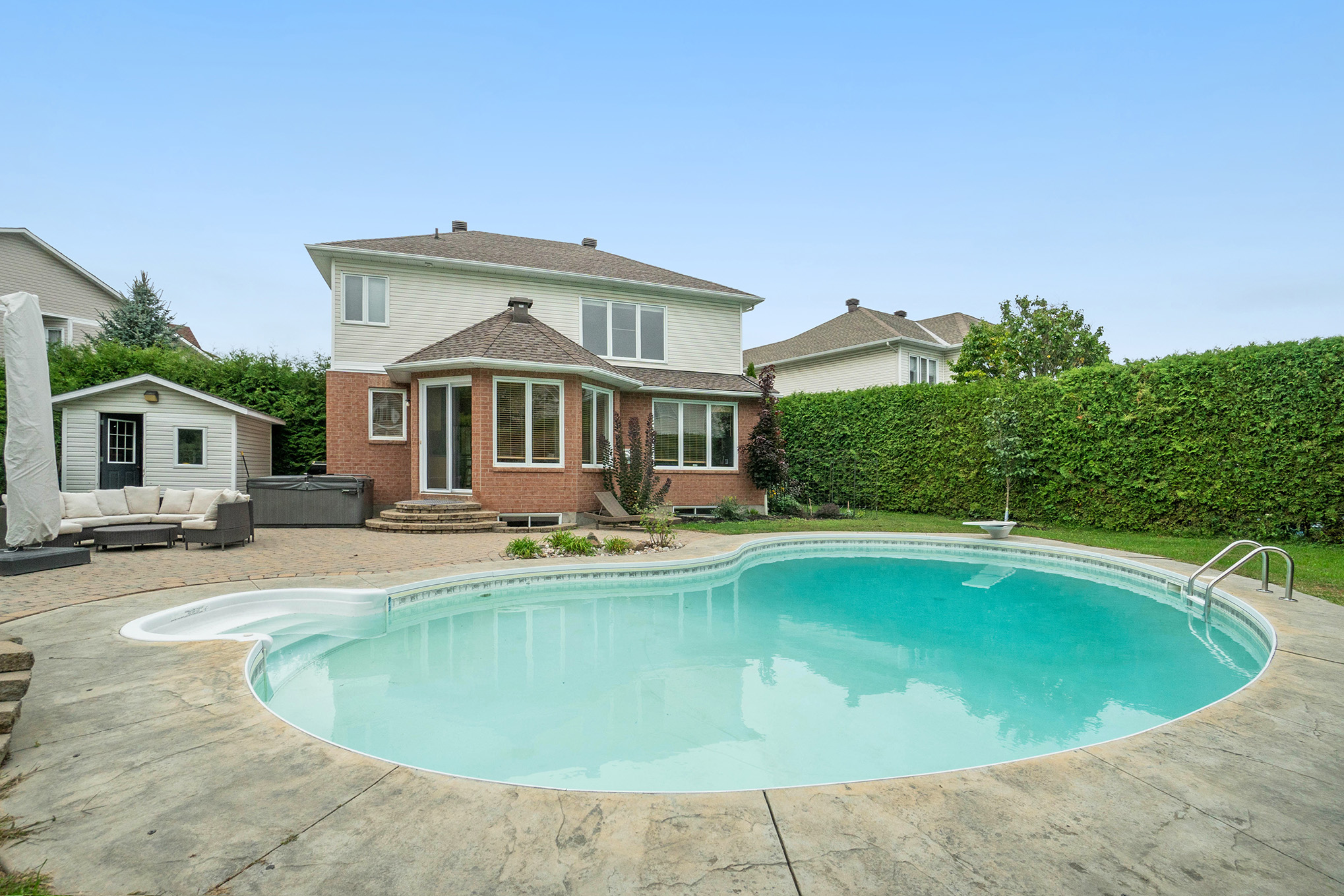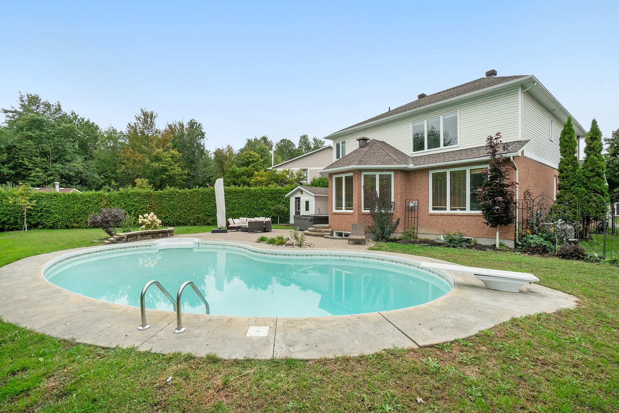Site influences: family oriented, fenced yard, inground salt water pool, lanscaped, sauna, patio