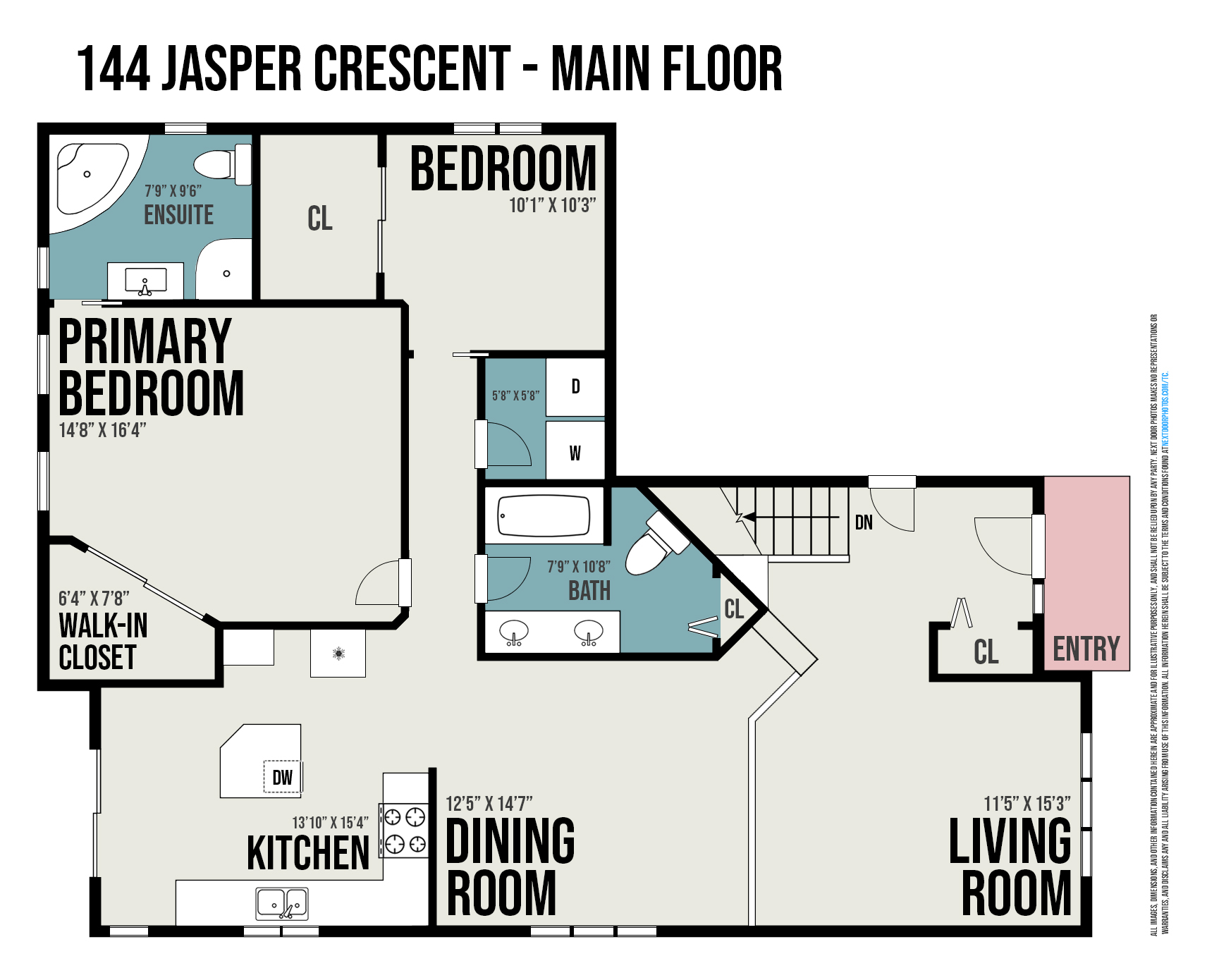 Living Room: 15'3x11'5Dining Room: 14'7x12'5